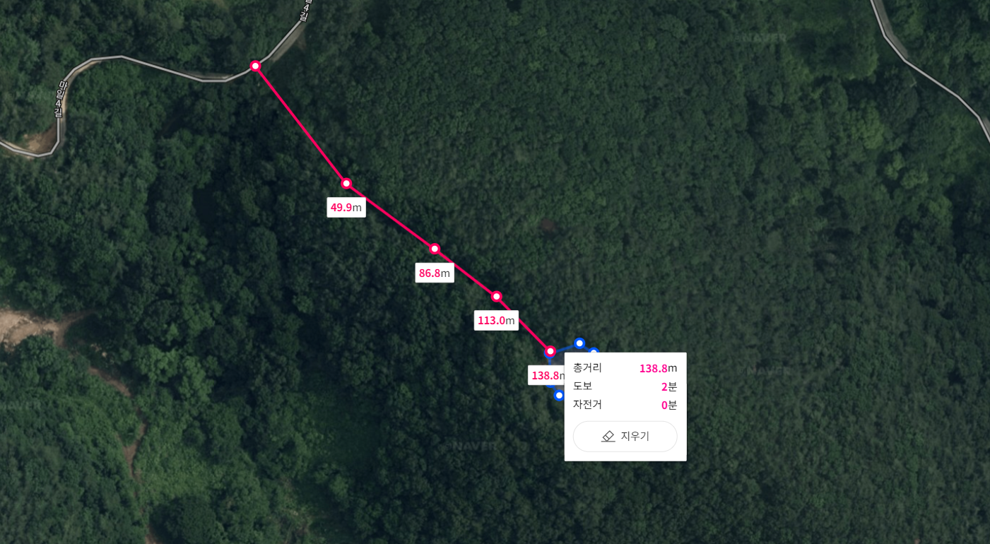 만약 차량이 주차한 곳에서 산소까지 도보 거리가 138.8m라고 가정한다면..